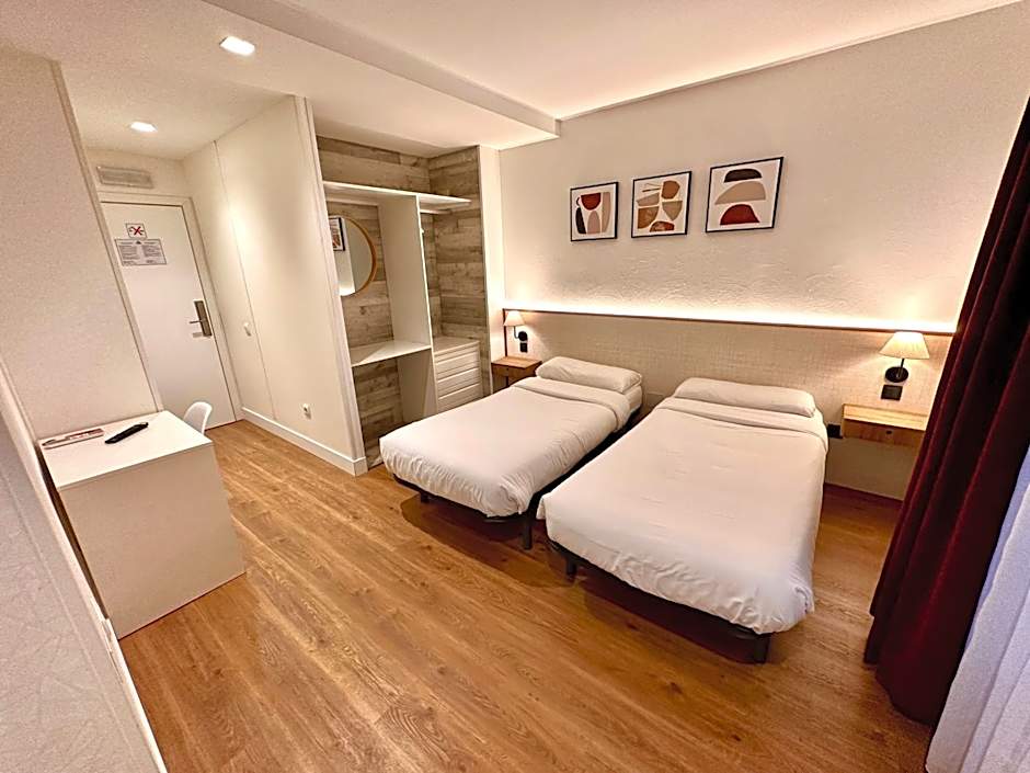 This twin room offers 2 single beds with a private bathroom. It has modern décor and a parquet floor. The room also offers a flat-screen TV and air conditioning.